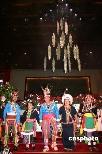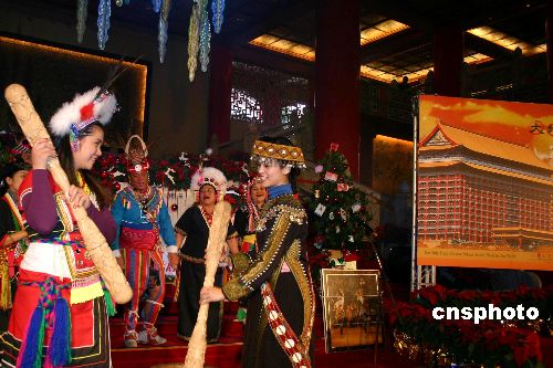 十二月五日下午,古色古香的臺(tái)北圓山飯店舉行圣誕點(diǎn)燈儀式,并請(qǐng)來(lái)原住民作為大地的代言人,從大地采光,點(diǎn)燃圣誕之燈。據(jù)了解,今年圓山飯店的圣誕樹(shù)造型的燈使用環(huán)保材料,圣誕之后,仍可用作日常的照明。中新社發(fā) 陳國(guó)華 攝