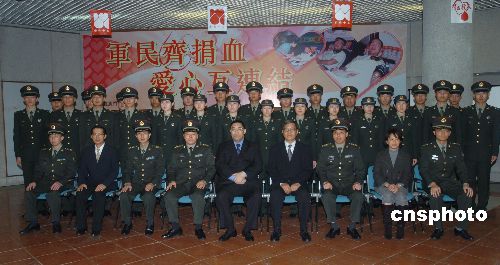 十二月六日,一百名中國人民解放軍駐澳門部隊指戰(zhàn)員在澳門綜藝館參加義務獻血活動。這是解放軍駐澳部隊指戰(zhàn)員的第八次義務獻血。圖為澳門社會文化司司長崔世安與獻血的指戰(zhàn)員合影。中新社發(fā) 史利 攝
