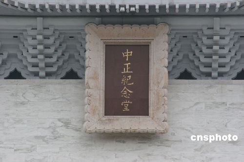 12月6日,臺灣當(dāng)局已將臺北市標(biāo)志性建筑“中正紀(jì)念堂”的牌匾拆除,將換上“民主紀(jì)念館”的新牌匾。圖為拆除前的“中正紀(jì)念堂”的牌匾。中新社發(fā) 耿軍 攝