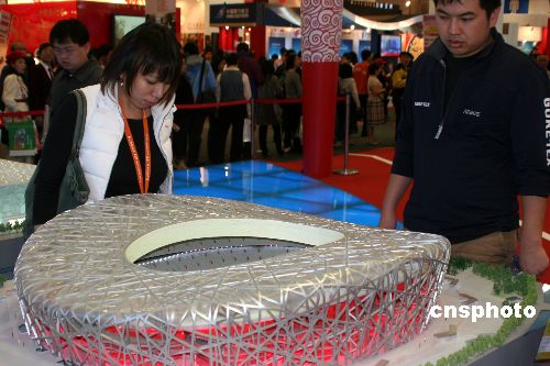 十二月十四日,第二屆海峽兩岸臺(tái)北旅展在臺(tái)北世貿(mào)展館開幕。圖為奧運(yùn)和世博展區(qū)內(nèi)的北京奧運(yùn)會(huì)主場(chǎng)館“鳥巢”模型,吸引觀眾駐足欣賞。中新社發(fā) 董會(huì)峰 攝