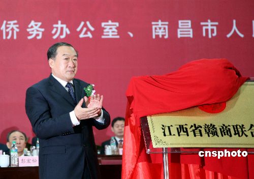 十八日,江西省舉辦首屆世界贛商論壇,近千名來自世界各地的贛籍商人出席盛會。圖為新任江西省委書記蘇榮為剛剛成立的江西省贛商聯(lián)合會揭牌。中新社發(fā) 吳慶才 攝