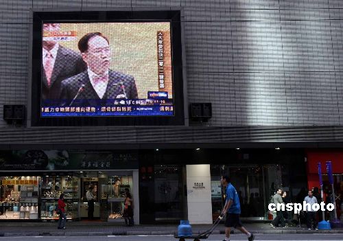 香港鬧市屏幕直播曾蔭權會見新聞界相關報道