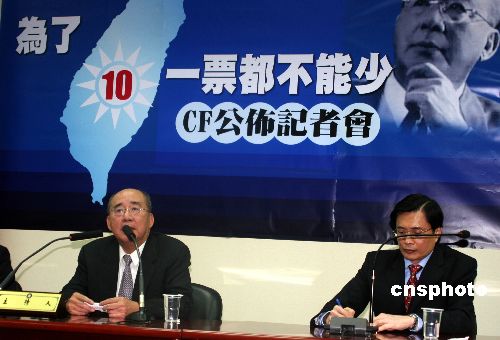 一月七日,中國國民黨主席吳伯雄(左一)上午在國民黨中央黨部主持催票文宣發(fā)表記者會(huì)。當(dāng)日距第七屆“立委”選舉投票日只有五天,臺(tái)灣“選戰(zhàn)”氛圍日濃。中新社發(fā) 陳立宇 攝