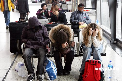 一月二十七日,本應(yīng)二十六日下午三時(shí)搭乘T98次京九直通車(chē)返京的旅客滯留紅磡車(chē)站。由于天氣原因,T98次京九直通車(chē)二十七日下午二時(shí)后才駛離香港紅磡車(chē)站,比原定日期延誤一天。中新社發(fā) 武仲林 攝
