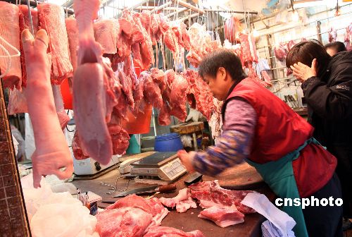 一月二十九日,香港市民在街市選購新鮮豬肉。臨近春節(jié),各類供港食品受內(nèi)地大風(fēng)雪影響價格上漲,豬肉零售價再次飆升至每斤四十至四十四元。香港食物及衛(wèi)生局局長周一岳表示,中央已采取緊急調(diào)配措施,務(wù)求把內(nèi)地大風(fēng)雪對供港食品的影響減至最低。中新社發(fā) 洪少葵 攝