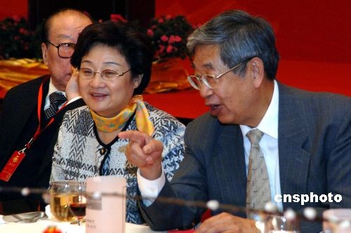 二月十八日晚,中國全國人大常委會副委員長許嘉璐(右一)、國務(wù)院僑務(wù)辦公室主任李海峰(右二)在福州出席“海峽西岸鬧元宵,全球華人盼團圓”活動歡迎晚宴。該活動由國務(wù)院僑務(wù)辦公室、福建省人民政府、海峽兩岸關(guān)系協(xié)會聯(lián)合主辦,來自四十多個國家和地區(qū)的海外華僑華人及港澳臺同胞代表到福州歡度元宵佳節(jié)。中新社發(fā) 王東明 攝