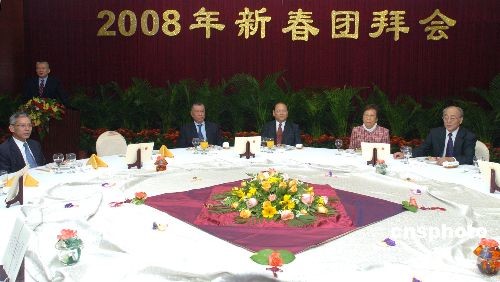 二月二十一日晚,中央人民政府駐澳門(mén)特別行政區(qū)聯(lián)絡(luò)辦公室在新竹苑舉行2008年新春團(tuán)拜會(huì),宴請(qǐng)澳門(mén)地區(qū)全國(guó)人大代表和政協(xié)委員。澳門(mén)特首何厚鏵、中聯(lián)辦主任白志健出席新春團(tuán)拜會(huì)。中新社發(fā) 史利 攝