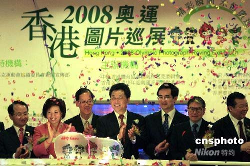 “精彩瞬間,永恒奧運-香港·2008奧運圖片巡展”四月二十五日在香港中央圖書館開幕,近三百幅奧運圖片將在全港進(jìn)行九場展覽,歷時三個月。(左二起)北京奧組委新聞宣傳部部長王惠、香港民政事務(wù)局局長曾德成、中央駐港聯(lián)絡(luò)辦公室副主任李剛、外交部駐港公署副特派員楊子剛、香港奧林匹克委員會會長霍震霆等眾多嘉賓出席主持開幕式。中新社發(fā) 王麗南 攝