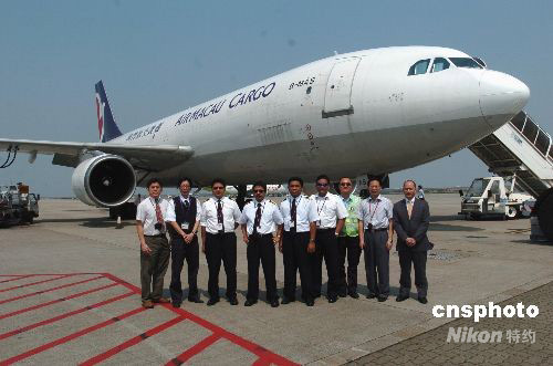 五月十五日,一架滿載臺灣同胞為四川地震災區(qū)捐贈的四十三噸救災物資的飛機停在澳門國際機場整裝待發(fā)。澳門航空公司免費加開的這架空中巴士A300-600R貨機當日中午從臺北桃園機場起飛,在澳門國際機場作暫短停留后,將飛抵成都雙流國際機場。中新社發(fā) 史利 攝