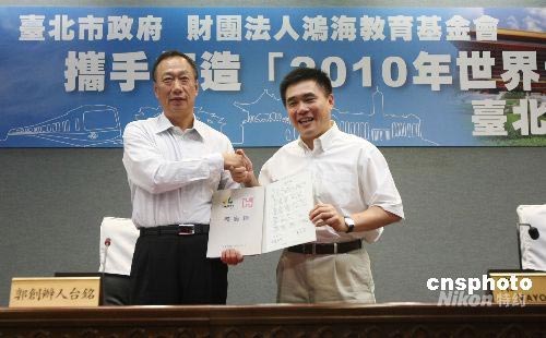 6月下旬,臺灣鴻海集團(tuán)董事長郭臺銘捐出新臺幣三億元給臺北市政府,作為2010年舉行的上海世界博覽會“臺北展覽館”的興建費(fèi)用。中新社發(fā) CNA 攝