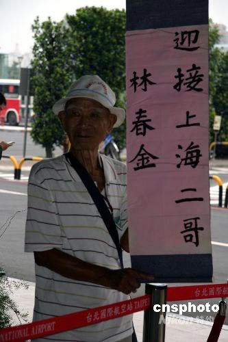 兩岸周末包機七月四日啟程,臺灣社會各界關(guān)注。二十歲來到臺灣的老伯林振鳳一大早從臺南趕到臺北松山機場,接搭乘兩岸周末包機八十四歲的二哥林春金。這將是林振鳳老人自十六年前臺灣當(dāng)局開放到大陸探親后,他再次與兄弟相見。中新社發(fā) 徐長安 攝