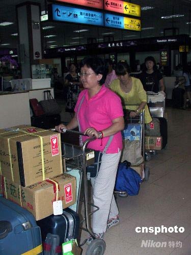 十天前赴臺旅游的大陸首發(fā)團七百多人,7月13日陸續(xù)搭乘海南航空、南方航空、東方航空和中國國際航空公司周末包機返回北京、廣州和上海,結(jié)束了時隔近六十年后,大陸居民赴臺旅游首發(fā)團的十日環(huán)島行程。十天時間里,首發(fā)團在臺灣同胞協(xié)助下,漫步阿里山、日月潭,暢游墾丁,游覽花蓮太魯閣,看盡寶島風光,也近距離接觸臺灣風土人情、人文景觀,開啟了兩岸民眾的親密接觸。中新社發(fā) 徐長安 攝