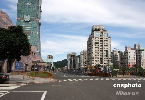 8月28日下午二時半至三時,臺北市舉行“萬安演習”,車輛行人凈空。圖為原本車輛和行人繁忙的世貿中心大街一帶道路上空無一人。中新社發(fā) 陳立宇 攝