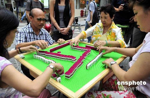 九月五日,首屆“世界麻將大賽”冠軍許宗澧在記者會(huì)上與其它選手比較高下。第二屆“世界麻將大賽”將于九月十九日至二十一日在澳門舉行,提供麻將競(jìng)賽有史以來的最高額獎(jiǎng)金一百萬美元。中新社發(fā) 譚達(dá)明 攝