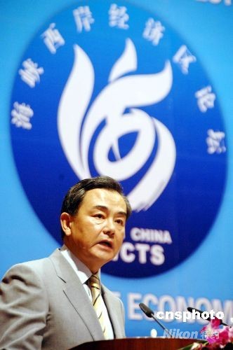九月七日上午,中共中央臺辦、國務(wù)院臺辦主任王毅在廈門開幕的第三屆海峽西岸經(jīng)濟區(qū)論壇作重要演講時,宣布為便利兩岸同胞交往,大陸方面決定采取五項新的政策措施。 中新社發(fā) 鄭祚聲 攝