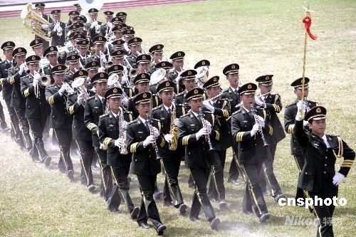 圖為駐港部隊(duì)舉行軍樂隊(duì)列表演。