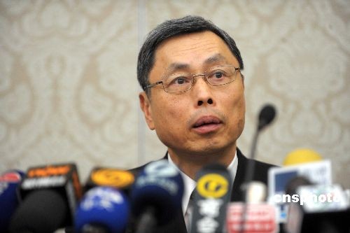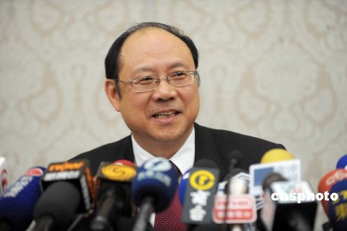 圖為海協(xié)會(huì)副會(huì)長(zhǎng)鄭立中會(huì)見媒體記者。