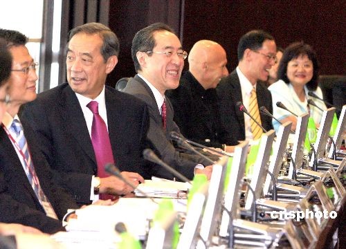 十月二十八日,香港西九文化區(qū)管理局董事局在國金中心舉行首次會議,討論招聘行政總裁、成立秘書處等事宜。西九文化區(qū)管理局董事局主席、政務(wù)司司長唐英年(左三)等與會。中新社發(fā) 張勤 攝