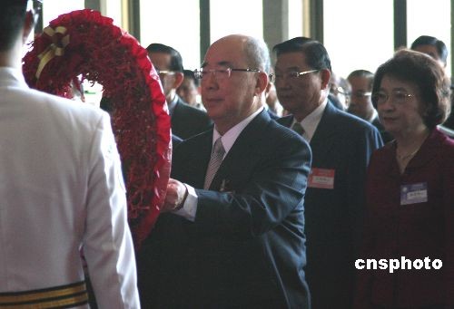 11月22日,中國國民黨第十七次全代會臨時會議在臺北“國父紀念館”舉行。圖為會議前,國民黨主席吳伯雄率黨內(nèi)同仁在紀念館內(nèi)向中山先生銅像獻花致敬。中新社發(fā) 劉舒凌 攝