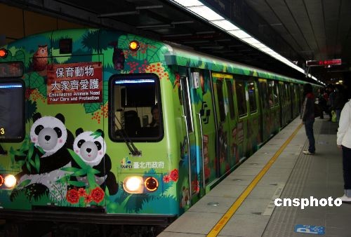 12月26日,臺(tái)北市啟動(dòng)大熊貓彩繪車穿梭于市內(nèi)捷運(yùn)中,臺(tái)灣熊貓熱進(jìn)一步升溫。中新社發(fā) 陳立宇 攝