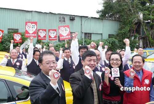 1月4日,“無煙臺灣,Yes We Can!” 數(shù)十名臺灣計程車司機(jī)共同誓師響應(yīng)“煙害防治法”,在車體上張貼明顯的禁煙標(biāo)識。距離臺灣1月11日正式實(shí)行“煙害防治法”僅剩一周時間,臺灣的禁煙宣導(dǎo)活動也進(jìn)入總動員。中新社發(fā) 路梅 攝