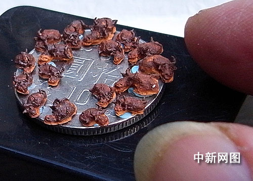 今年是農歷牛年,臺灣著名微雕家陳逢顯特地用磚泥雕刻了十七只小牛,置于一枚十元硬幣上,以此來紀念牛年,希望臺灣經(jīng)濟能“牛轉乾坤”。