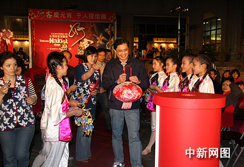 元宵節(jié)將至,2月7日晚,臺北縣三峽鎮(zhèn)客家文化園區(qū)舉行客家博覽會“千人提燈趣”元宵點燈活動。