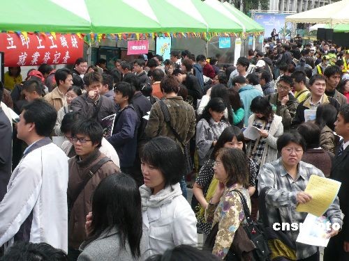 大環(huán)境經(jīng)濟(jì)不景氣,臺灣去年十二月失業(yè)率超過百分之五,失業(yè)人口近五十無萬!爸饔(jì)處”對今年經(jīng)濟(jì)成長率的預(yù)測為負(fù)百分之二點(diǎn)九七。臺北市政府勞工局在二十一日舉行了一場就業(yè)博覽會,釋出兩千多個工作職位,并提供職業(yè)訓(xùn)練課程供民眾申請。中新社發(fā) 路梅 攝