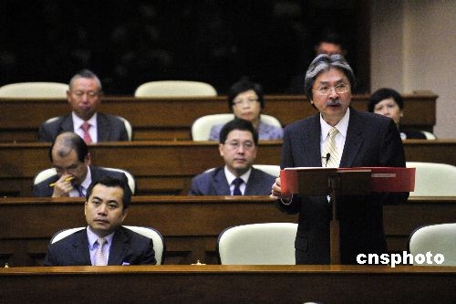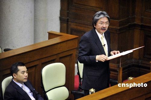 二月二十五日,香港特區(qū)財政司司長曾俊華在立法會大樓會議廳向立法會提交二零零九至二零一零年度財政預(yù)算案。中新社發(fā) 譚達(dá)明 攝