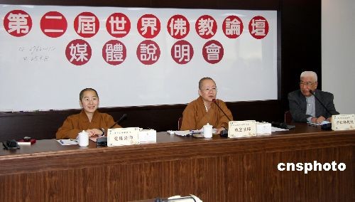 3月2日,臺(tái)灣佛光山國(guó)際佛光會(huì)在臺(tái)北舉行媒體說(shuō)明會(huì),宣布第二屆世界佛教論壇自3月30日開(kāi)始從大陸移師臺(tái)北,論壇的閉幕式將于4月1日在臺(tái)北巨蛋體育館舉行。據(jù)悉,由中國(guó)佛教協(xié)會(huì)、臺(tái)灣佛光山國(guó)際佛光會(huì)、香港佛教聯(lián)合會(huì)和中華宗教文化交流協(xié)會(huì)共同主辦的第二屆世界佛教論壇將于3月28日在無(wú)錫市開(kāi)幕,4月1日在臺(tái)北閉幕。圖為佛光山國(guó)際佛光會(huì)發(fā)言人、第二屆世界佛教論壇臺(tái)灣部分的發(fā)言人依空法師(中)在記者會(huì)上介紹論壇臺(tái)灣部分籌備情況。中新社發(fā) 陳立宇 攝