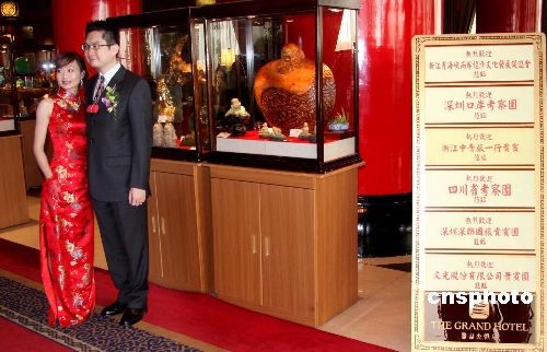 臺(tái)北酒店成為兩岸關(guān)系的晴雨表。隨著兩岸關(guān)系的改善,赴臺(tái)灣交流的大陸團(tuán)隊(duì)迅速增多,給臺(tái)北酒店帶來(lái)滾滾生意。圖為3月24日臺(tái)北著名的圓山大飯店大堂門(mén)口處的歡迎入住團(tuán)隊(duì)標(biāo)牌。中新社發(fā) 耿軍 攝