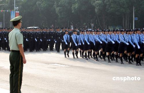 十月十日,廣西南寧舉行安全保衛(wèi)誓師大會(huì),以確保本月底在南寧召開的第四屆中國—東盟博覽會(huì)、中國—東盟商務(wù)與投資峰會(huì)以及南寧國際民歌藝術(shù)節(jié)的安全。中新社發(fā) 黃念飛 攝
