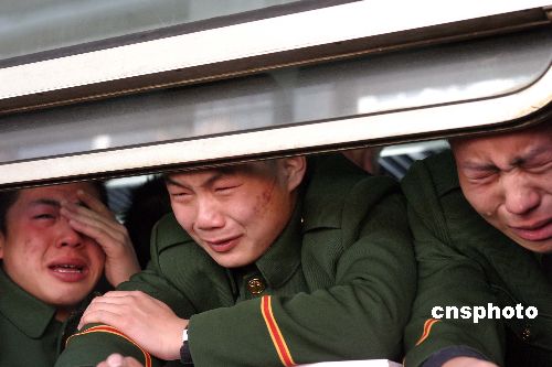 11月26日中午,駐守在中朝邊境100多名四川籍邊防退伍老兵返鄉(xiāng)。中新社發(fā) 陳浩浩 攝