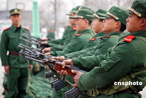 2008年2月2日,武警安徽總隊(duì)淮北支隊(duì)的新戰(zhàn)士正在進(jìn)行冬季訓(xùn)練。為了確保武警部隊(duì)在復(fù)雜惡劣的環(huán)境中隨時能拉得出、打得贏,連日來,武警安徽總隊(duì)淮北支隊(duì)針對駐地天寒地凍這一情況,通過冬練三九,盡快提高新戰(zhàn)士的軍事素質(zhì)和戰(zhàn)斗力。中新社發(fā) 謝正義 攝