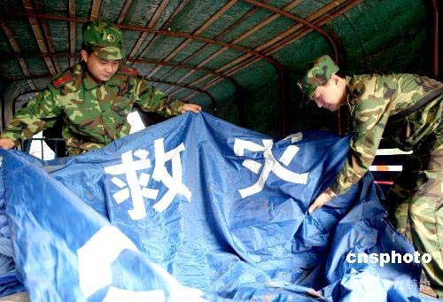 5月13日,四川省廣安市華鎣的民兵抗震應(yīng)急隊員在整裝待發(fā)。5月12日14時28分,四川省汶川發(fā)生7.8級地震,位于川東地區(qū)的廣安軍分區(qū)得知消息后,及時號召所轄地區(qū)的民兵組織抗震應(yīng)急隊援助汶川災(zāi)區(qū),幫助搶險救災(zāi)、重建家園,首批120民兵抗震應(yīng)急隊員己作好準(zhǔn)備原地待命。據(jù)悉,該市將陸續(xù)組織民兵抗震應(yīng)急隊分期分批援助汶川災(zāi)區(qū)。中新社發(fā) 邱海鷹 攝
