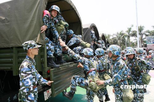 中國(guó)海軍陸戰(zhàn)隊(duì)官兵緊急起程奔赴汶川災(zāi)區(qū)