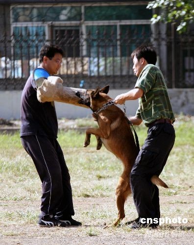 9月10日,在中國刑警警犬技術(shù)學(xué)校警犬訓(xùn)練基地,為了迎接即將到來的中國刑警學(xué)院建院60周年,師生們齊心協(xié)力訓(xùn)練忙。中新社發(fā) 趙敬東 攝