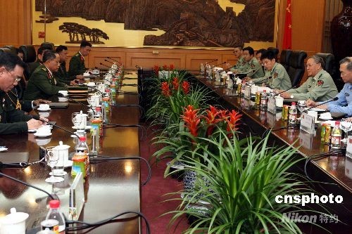 中央軍委委員、中國(guó)人民解放軍總參謀長(zhǎng)陳炳德上將,9月26日在北京八一大樓會(huì)見應(yīng)邀來(lái)華觀摩“礪兵--2008”演習(xí)的文萊、喀麥隆、老撾、泰國(guó)等軍隊(duì)領(lǐng)導(dǎo)人。中新社發(fā) 宋吉河 攝