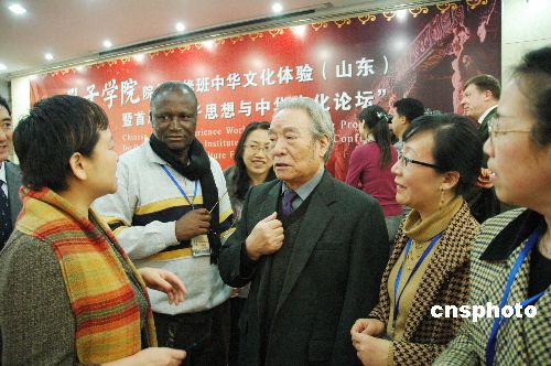 12月16日至18日,由中國(guó)國(guó)家漢辦主辦的全球孔子學(xué)院院長(zhǎng)研修班中華文化體驗(yàn)暨首屆“孔子思想與中華文化論壇”在山東大學(xué)舉行;顒(dòng)期間,來(lái)自18個(gè)國(guó)家34個(gè)孔子學(xué)院的44名外方院長(zhǎng)赴孔子故里——山東曲阜,參觀考察了孔府、孔廟和孔子研究院,體驗(yàn)中華文化,并出席首屆“孔子思想與中華文化論壇”,聆聽(tīng)山東大學(xué)儒學(xué)研究中心著名教授丁冠之和傅有德教授主講的《孔子,我們共同的老師》、《論言說(shuō):中西差異及其根源》的演講。背景資料:孔子學(xué)院是中外合作建立的非營(yíng)利性教育機(jī)構(gòu),其宗旨和使命是增進(jìn)世界人民對(duì)中國(guó)語(yǔ)言和文化的了解,發(fā)展中國(guó)與外國(guó)的友好關(guān)系,促進(jìn)世界多元文化發(fā)展,并以東方圣人孔子的名字命名。從2004年開(kāi)始,中國(guó)已在64個(gè)國(guó)家和地區(qū)建立210所孔子學(xué)院(包括孔子課堂),其中125所已開(kāi)班授課。此外,還有61個(gè)國(guó)家的200多個(gè)機(jī)構(gòu)提出開(kāi)辦申請(qǐng)。中新社發(fā) 金云 攝
