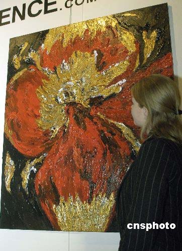 第三十屆紐約藝術(shù)博覽會(huì)28日在曼哈頓開(kāi)幕,為期5天的博覽會(huì)將展出數(shù)十個(gè)國(guó)家的近千名藝術(shù)家的美術(shù)、雕塑、攝影等藝術(shù)作品。圖為來(lái)自丹麥的一名藝術(shù)家以黃金為創(chuàng)作材料的油畫(huà)作品《花》。中新社發(fā) 鄧悅 攝