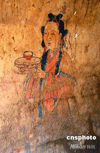 4月28日,在重慶市永川區(qū)青峰鎮(zhèn)被發(fā)現(xiàn)的明代古墓群經(jīng)過考古專家的清理發(fā)掘,其大部分已出土。由于處于公路施工現(xiàn)場,古墓群在被發(fā)現(xiàn)時已部分損壞,但其中最具價值的一個墓室幸得保留。該墓室內(nèi)壁繪滿精致壁畫,色彩鮮艷。考古專家稱,該明代古墓群極具考古價值,它的出土,對研究明代時期的巴渝文化具有重要作用。據(jù)悉,在經(jīng)過進(jìn)一步清理發(fā)掘后,該古墓群將被整體搬遷,妥善保存。 中新社發(fā) 楊振宇 攝
