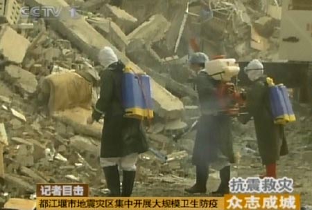 都江堰市地震災(zāi)區(qū)展開(kāi)大規(guī)模衛(wèi)生防疫