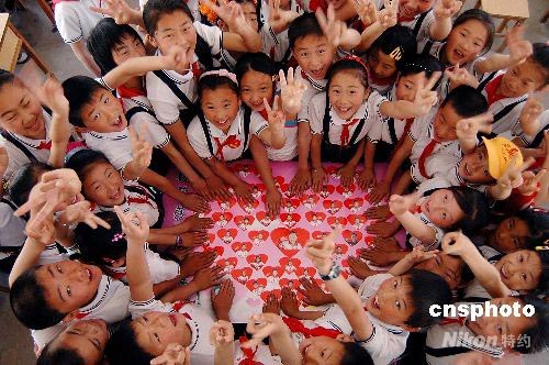 四川地震災(zāi)區(qū)小學(xué)生山東日照歡樂(lè)過(guò)“六一”