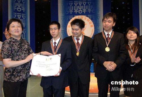 7月23日,中國科學技術(shù)協(xié)會書記處書記程東紅女士為榮獲第七屆海峽兩岸大學生辯論賽團體冠軍的來自臺灣的東吳大學代表隊頒獎。當日,歷時3天的第七屆海峽兩岸大學生辯論賽在福州圓滿落幕。中新社發(fā) 劉可耕 攝