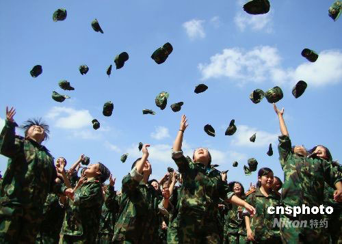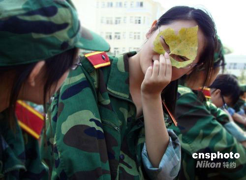 全國各高校新生一開學(xué)便開始大學(xué)“第一堂課”——軍訓(xùn)。揚(yáng)州大學(xué)文學(xué)院針對(duì)194名“90后”大一新生,提出了“快樂軍訓(xùn)”的口號(hào),除了為期10多天的正常軍事訓(xùn)練外,學(xué)院還開展了趣味游戲、“軍花”評(píng)比、內(nèi)務(wù)競賽等活動(dòng),為新生的軍訓(xùn)生活增添了一份樂趣,同時(shí)促進(jìn)彼此間的認(rèn)識(shí)和了解。中新社發(fā) 陳中秋 攝