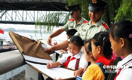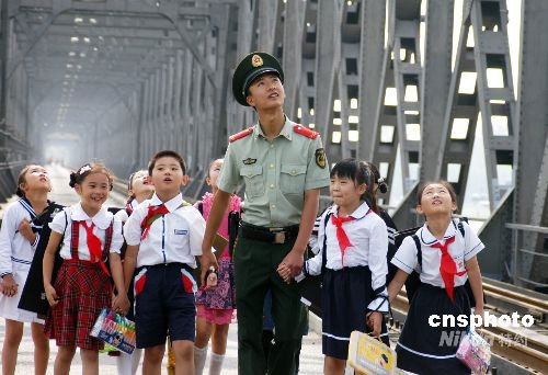 9月9日,開學(xué)伊始,又逢教師節(jié),遼寧丹東邊防檢查站邀請駐地多所小學(xué)師生參觀中朝友誼橋,與邊防戰(zhàn)士一同描繪第二故鄉(xiāng)美景。中新社發(fā) 陳浩浩 攝