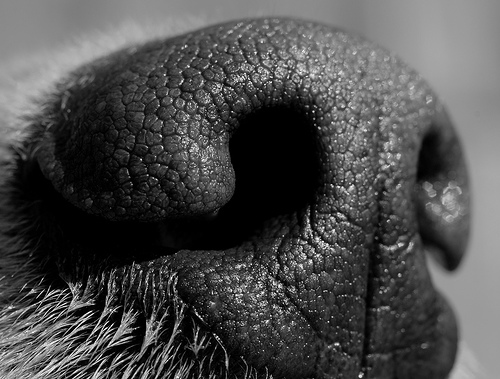 據(jù)測(cè)量,人類(lèi)的嗅覺(jué)細(xì)胞有500萬(wàn)個(gè),而狗的嗅覺(jué)細(xì)胞則有2億多個(gè),是人類(lèi)的40倍,可以分辨大約2萬(wàn)種氣味,經(jīng)過(guò)特殊訓(xùn)練的狗,可以分辨出犯罪分子攜帶的可卡因,甚至可以分辨出癌癥的氣味。人們研究的焦點(diǎn)始終聚集在狗的嗅覺(jué)器官如何捕捉氣味,無(wú)人關(guān)注狗鼻子上的粘液。傳統(tǒng)的觀點(diǎn)認(rèn)為,狗的鼻子保持濕潤(rùn)是身體健康的一種表現(xiàn),但是現(xiàn)在科學(xué)家發(fā)現(xiàn)狗鼻子上的粘液層還有助于它們辨別氣味。