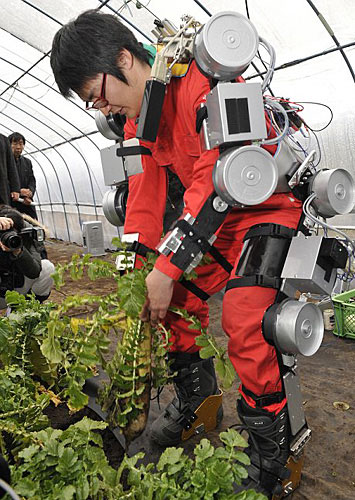 1月9日,日本研究人員成功發(fā)明了一種幫助人們從事體力勞動的特殊服裝。穿上這種由電子機械設(shè)備組裝而成的“衣服”,人在勞動時仿佛多了一個機器人幫手,就像在人體上附上了一個機器人。