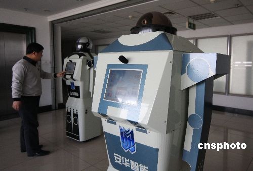 4月18日,濰坊(山東)安華智能公司工作人員展示“團團”“圓圓”智能機器人。由山東安華智能公司自主研發(fā)的一男一女兩款智能機器人身長分別為170、166厘米、體重各50公斤,男的名叫“團團”,女的名的“圓圓”。他們不但會跳舞,能自主靈活行走,并且具備與人交談、識別人臉和信息推介等諸多功能。據(jù)悉,“團團”“圓圓”將亮相第26屆濰坊風(fēng)箏會,并承擔(dān)迎賓任務(wù)。 中新社發(fā) 孫樹寶 攝