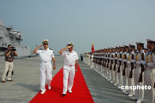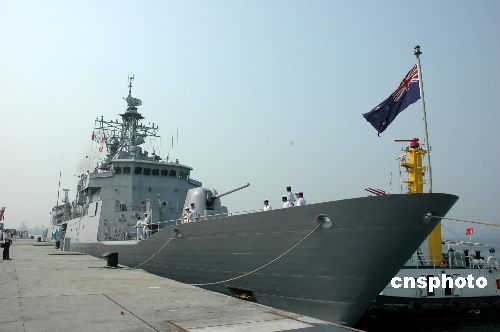 10月19日上午10時,新西蘭海軍“特卡哈”(Te Kaha)號護衛(wèi)艦(舷號F77)在新西蘭海上聯(lián)合作戰(zhàn)部隊司令大衛(wèi)·安森(David Anson)準(zhǔn)將的率領(lǐng)下,駛抵中國海軍湛江軍港,開始對南海艦隊進行為期3天的友好交流。中方南海艦隊副參謀長么志樓少將在碼頭舉行儀式,歡迎新艦首次訪問湛江。中新社發(fā) 李根成 攝